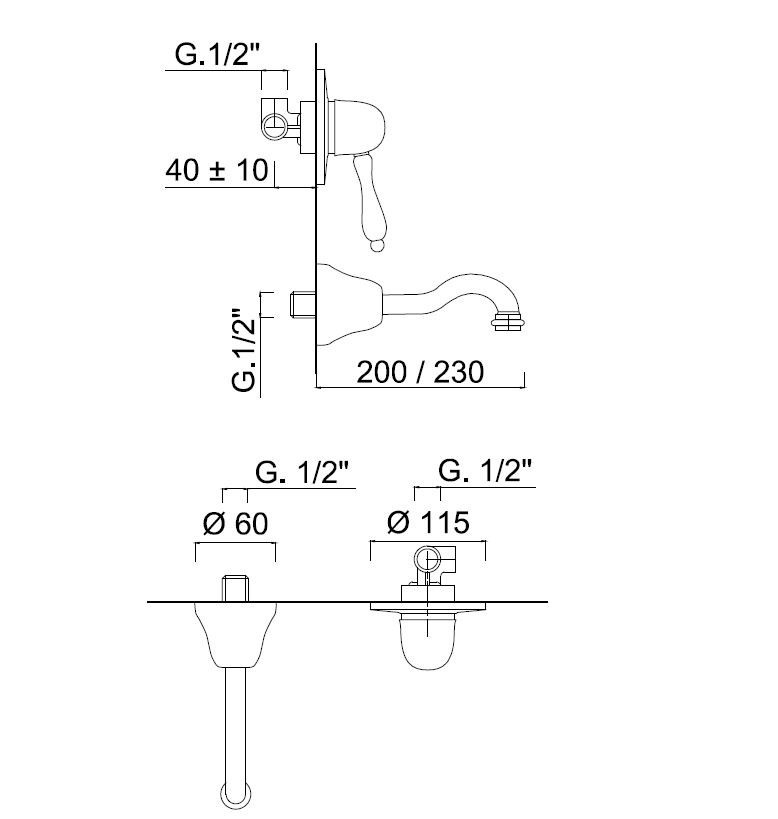 Baterie lavoar din perere Praga negru Giulini Italia