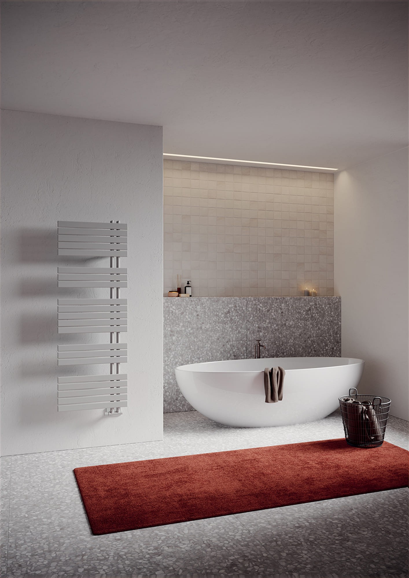Ușoară, minimală și esențială, SOUL_S reinterpretează orice mediu inconjurator. Perspectivele sale liniare sunt expresia evoluție, întâlnire fascinantă între o rundă colector și un profil plat, capabil să influențeze și caracterizează îmbunătățirea mediului în baie personalitatea acestuia. Disponibil în 3 înălțimi și 1 lățime. Odată cu introducerea rezistenței electrice (opțional) acesta poate funcționa chiar și în perioadele în care sistemul este oprit.