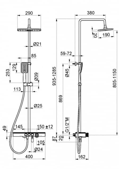 Coloană de duș VEMA WELLNESS cu cap de duș pătrat, mixer termostatic, crom ITALIA