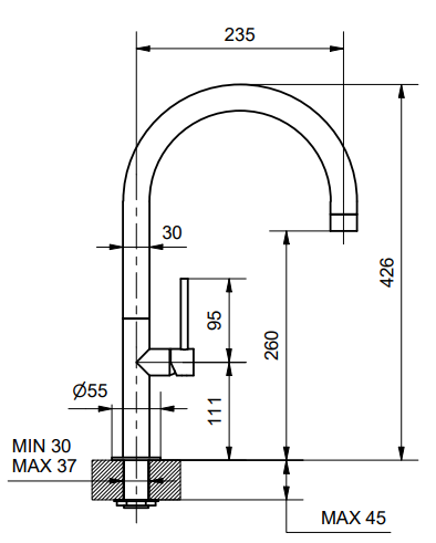 Baterie bucatarie inalta KIRVY STEEL inox Bugnatese Italia