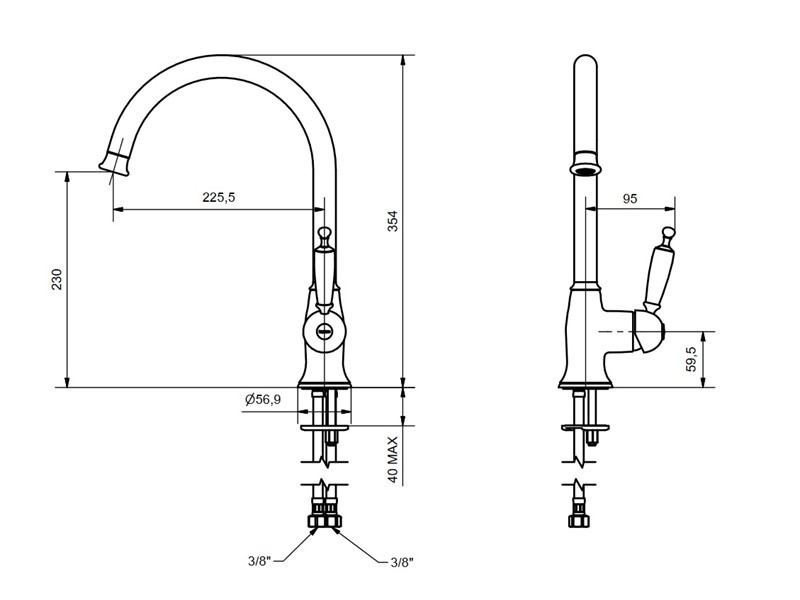 Baterie bucatarie inalta KIRVY STEEL inox Bugnatese Italia