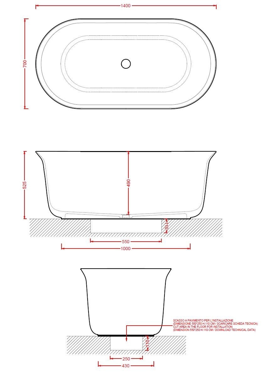 Cada freestanding Petiti 140/70/50 Artceram Italia
