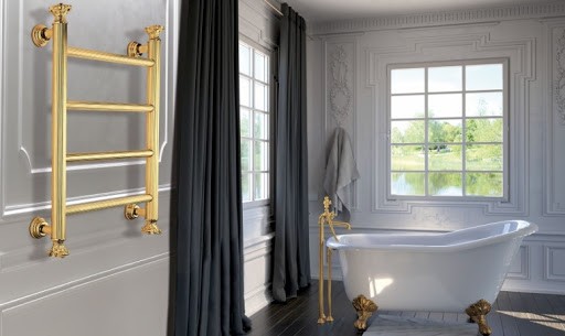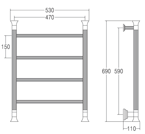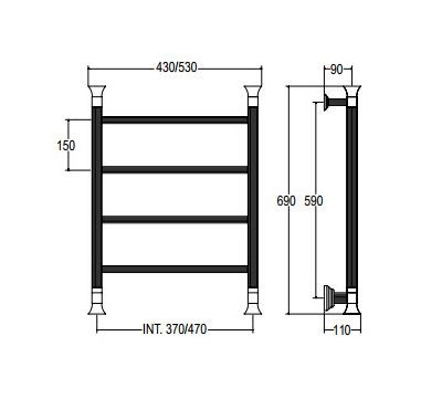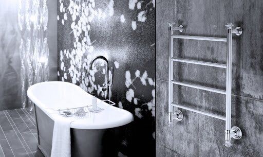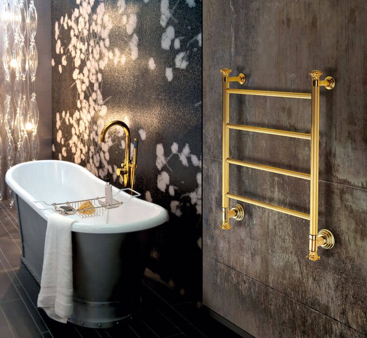 Suport încălzit pentru prosoape cu tub căptușit și capiteluri decorative din alamă DIMENSIUNI ȚEAVĂ: Ø45mm/30mm CONEXIUNE STANDARD: racord 1/2 M cu excentric