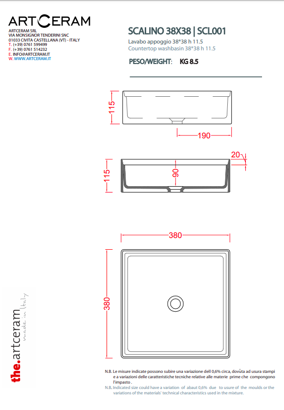 Lavoar pe blat 38/38 Scalino Artceram Italia