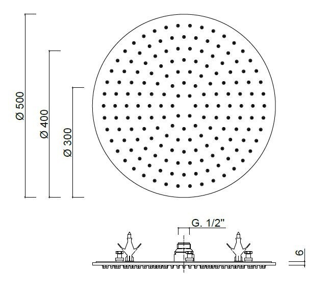 Para dus fix inox incastrata in tavan 30/40/50 cm Giulini Italia